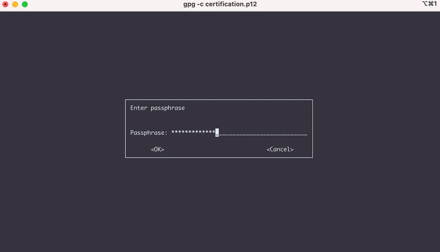 해당 과정을 통해 암호화된 .p12.gpg 파일 및 .mobileprovision.gpg파일을 얻을 수 있다.