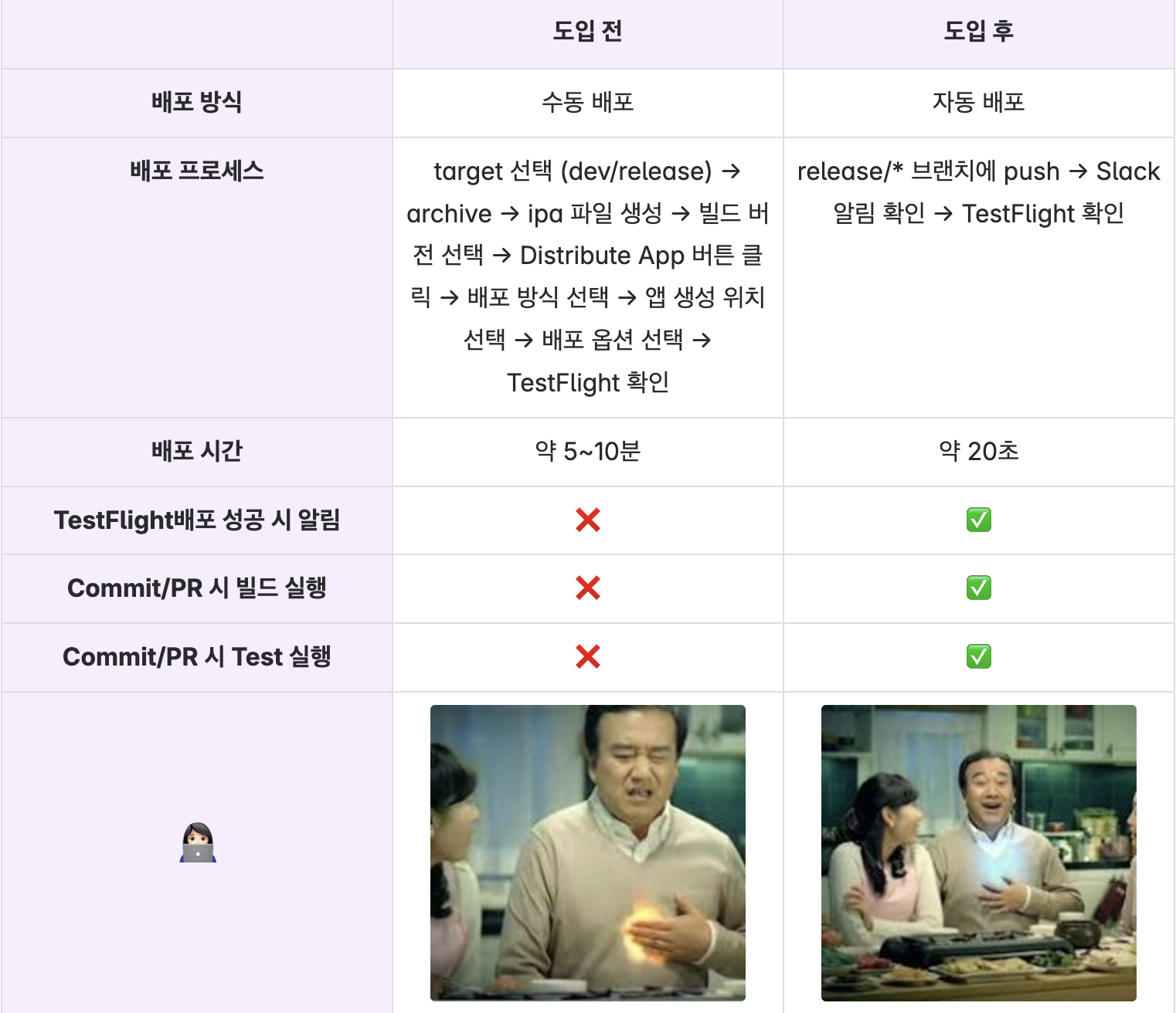 자동 배포 과정을 통해 개발자는 깃허브에 푸시하는 것만으로도 테스트플라이트에 배포할 수 있다