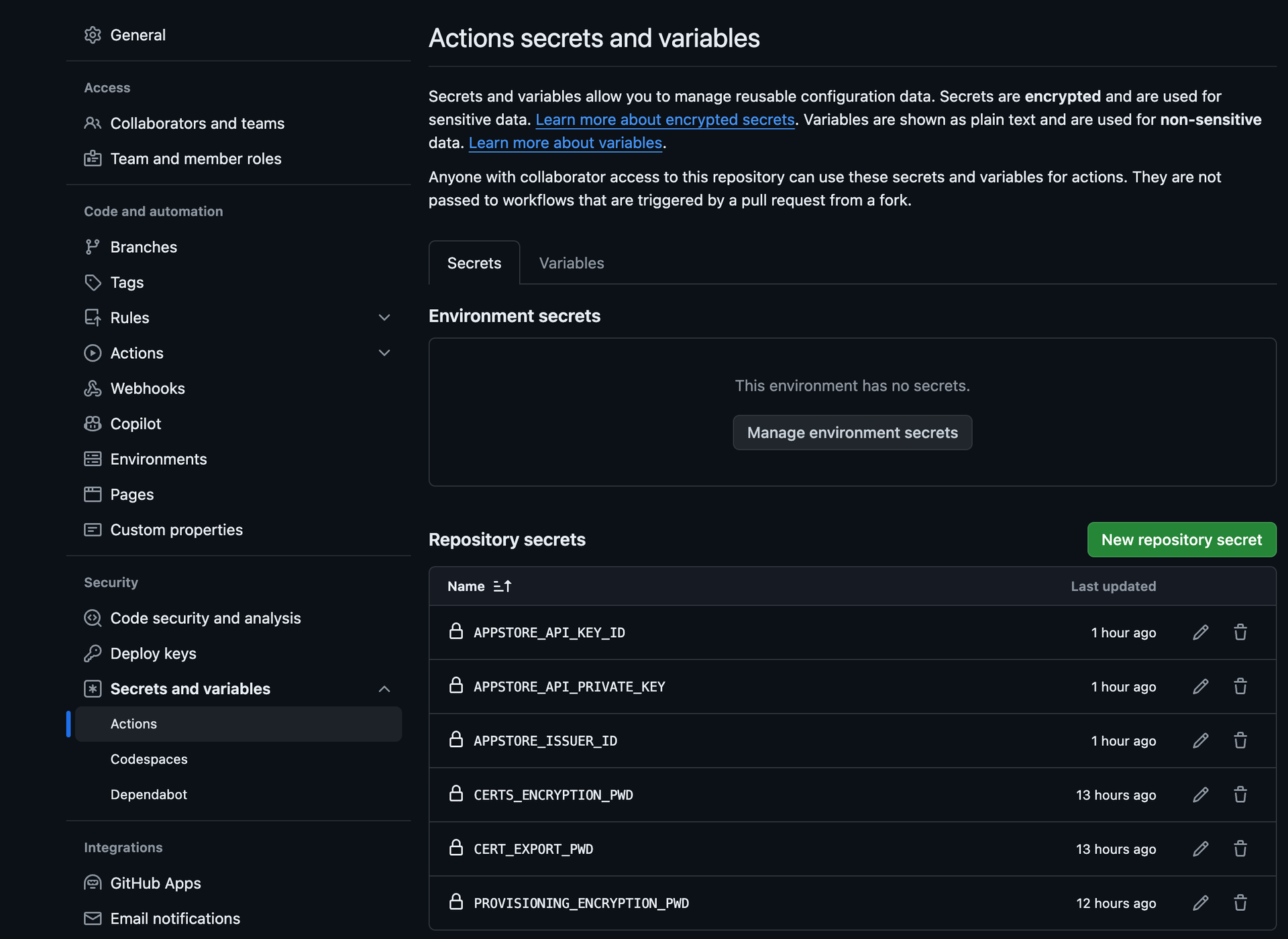 - CERTS_ENCRYPTION_PWD : .p12파일을 gpg로 파일 암호화할 때 사용한 암호. 복호화할때 필요